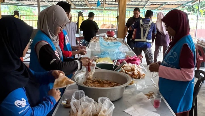 Selain itu, sejumlah hampir 400 pek makanan pada sebelah pagi, tengahari dan malam disediakan setiap hari bagi diagihkan kepada petugas dan juga mangsa yang terlibat dalam bencana banjir.